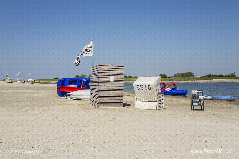 Sogar Wassersportler können sich in dem tideunabhängigen, 100.000 m² großen Wasserbecken austoben. Zwischen dem Bade- und Wassersportbecken führt eine Seebrücke zu einem terrassenartigen Einstig ins Watt. Dort gibt es auch Serviceeinrichtungen wie Gastronomie, Schließfächer, sanitäre Anlagen und den DLRG.