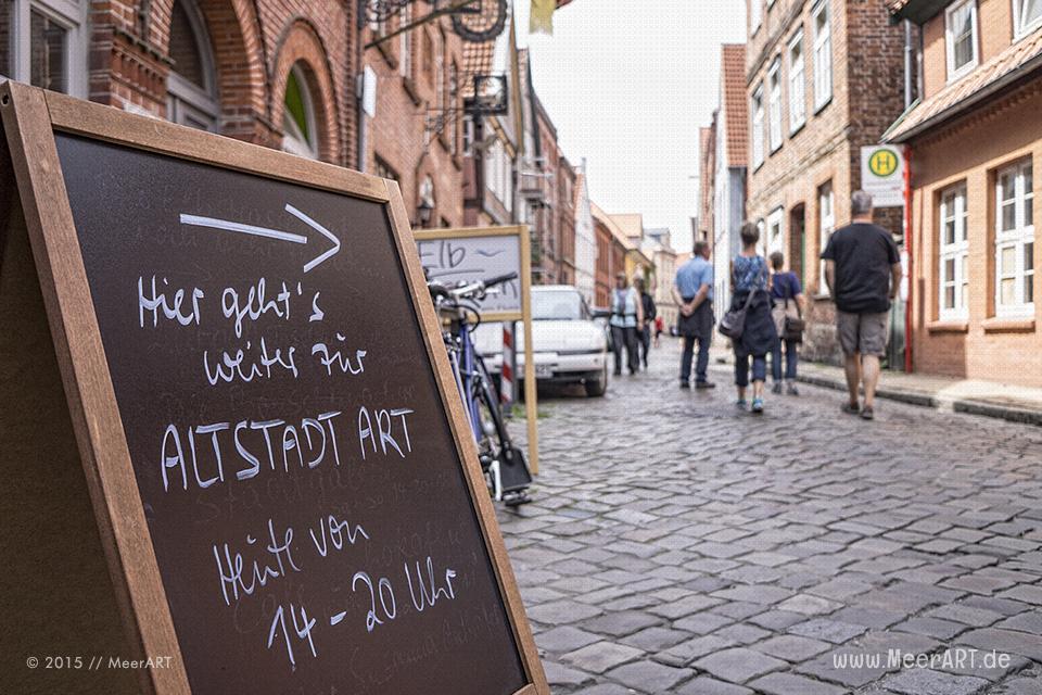 Doch für die Altstadt ART öffnen viele ihre Türen und stellen ihre Räume für Künstler und Kunstinteressierte zur Verfügung. Die Kunstmeile erstreckt sich über die ganze Elbstraße. Damit der Besucher die Gebäude, in denen ausgestellt wird findet, weisen Schilder mit der Aufschrift „Kunst & Genuss am Fluss“ den Besuchern den Weg.