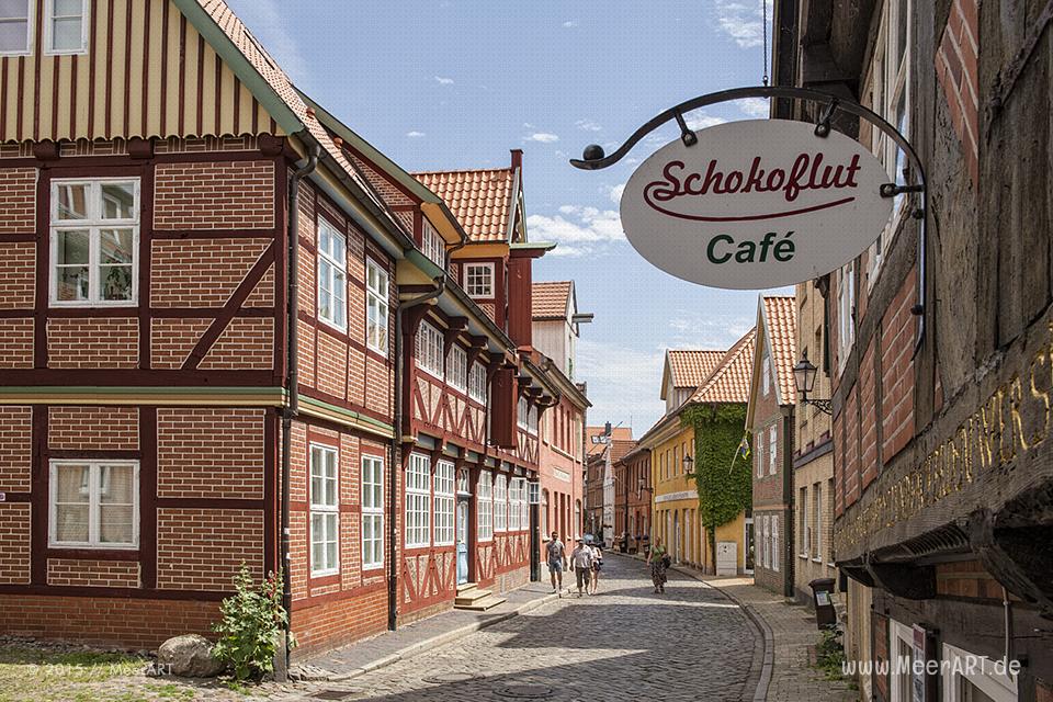 Ganz besonders die Uferpromenade und die Elbstraße sind betroffen. Die Elbstraße, in der auch am Wochenende die Kunstmeile stattfindet, ist übrigens die älteste Straße in Lauenburg. Malerische Fachwerkhäuser aus dem 16.-19. Jahrhundert zeugen vom damals blühenden Geschäftsleben. Viele der alten Fachwerkhäuser wurden liebevoll renoviert, andere scheinen aufgegeben.