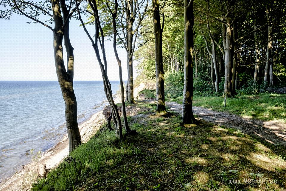 Der Blick von oben auf die azurblaue Ostsee allein ist schon ein Traum, aber auch die Licht- und Schattenspiele zwischen den Bäumen sind einfach atemberaubend schön. Ein wenig hat es uns an den Gespensterwald in Nienhagen erinnert, nur, dass wir es hier noch viel schöner fanden.