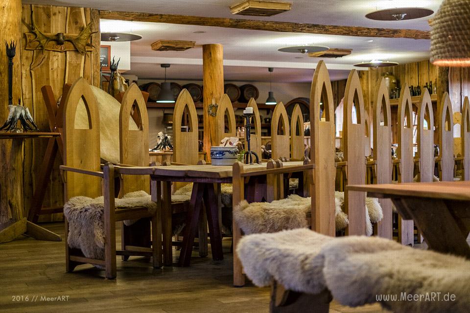 Die WIKINGERSCHÄNKE liegt ein wenig abseits in Busdorf. Schon die Anreise vermittelte uns ein Gefühl, als würden wir die reale Welt hinter uns lassen. Auch wenn das Gebäude es von außen nicht vermuten lässt, sobald man eingetreten ist, befindet man sich in einer anderen Welt – der Welt der Wikinger. Aber keine Angst, hier wird keiner überfallen. Im Gegenteil, sofort vermittelt das warme und gemütliche Ambiente ein Gefühl von Geborgenheit.