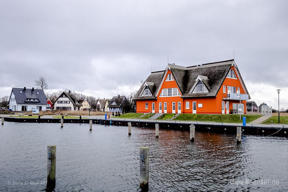 Schade, dass das Wetter heute so gar nicht mitspielte. Wenn uns nicht gerade ein Regenschauer überraschte, dann waren es die Nebelschwaden, die uns die Sicht nahmen. Normalerweise hat man hier bei klarer Sicht einen fantastischen Blick über den Bodden. Dafür hat aber das Fischerdorf seinen romantischen und verschlafenen Charme beibehalten.